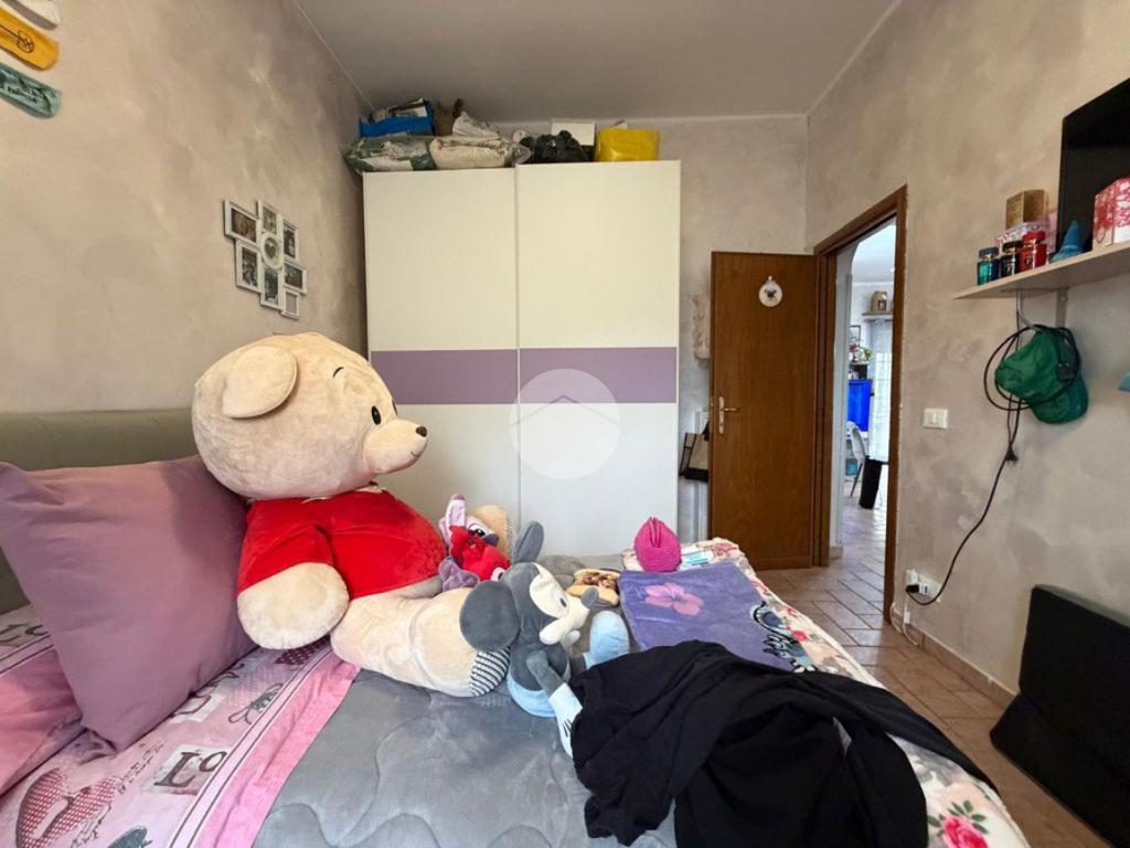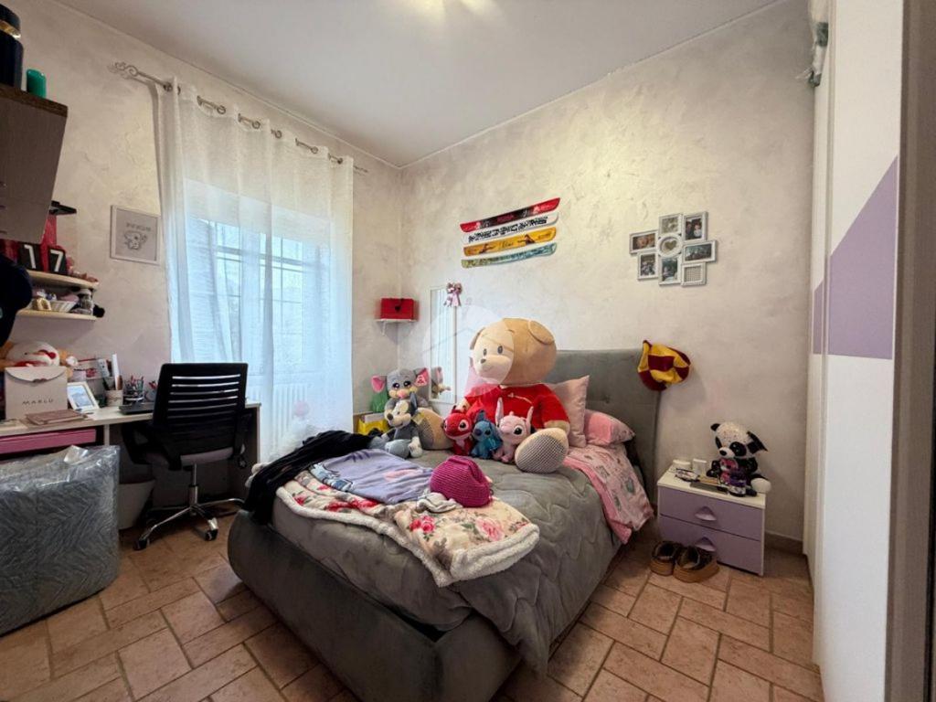 Un comodo disimpegno conduce alla zona notte, composta da una camera da letto matrimoniale, una cameretta e un bagno finestrato con doccia, pratico e ben distribuito.