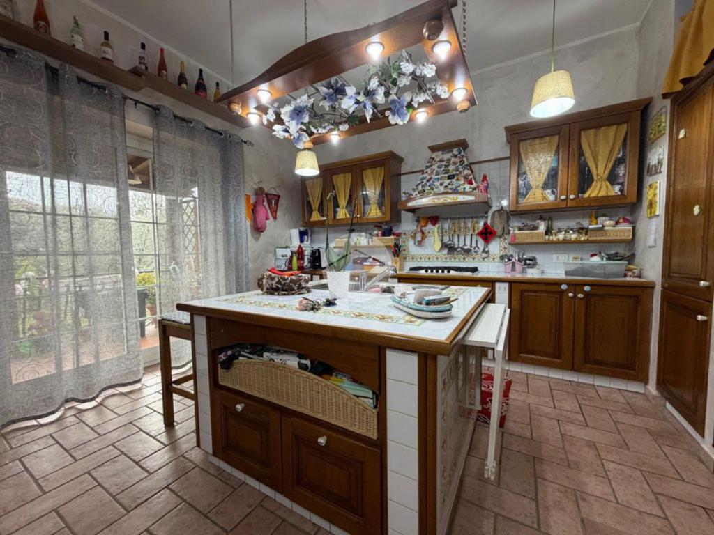 La cucina è abitabile, funzionale e ben organizzata, anch’essa con accesso diretto al balcone, rendendo la zona giorno ancora più ariosa e luminosa.