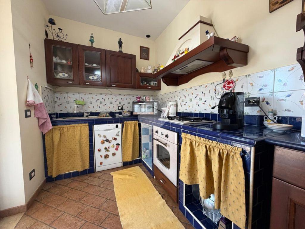 Al piano terra troviamo un ampio e luminoso salone con uscita diretta sul giardino, una cucina abitabile con accesso al portico esterno, un disimpegno che conduce alla zona notte composta da una camera matrimoniale, una cameretta e un bagno finestrato con vasca. Completa il piano una comoda lavanderia esterna .